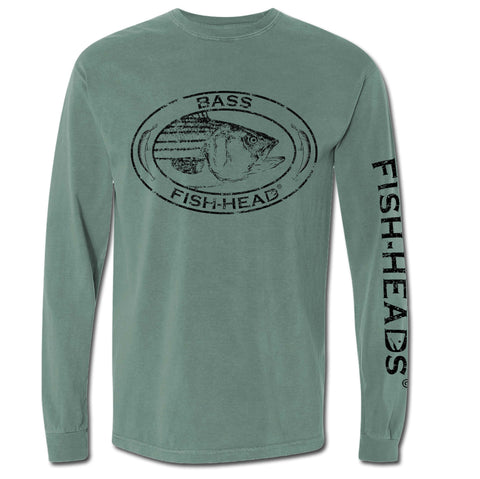 Tees include a 1-color full-front distressed screen print of the Bass Fish-Head logo and a 1-color Fish-Heads print on the sleeve.